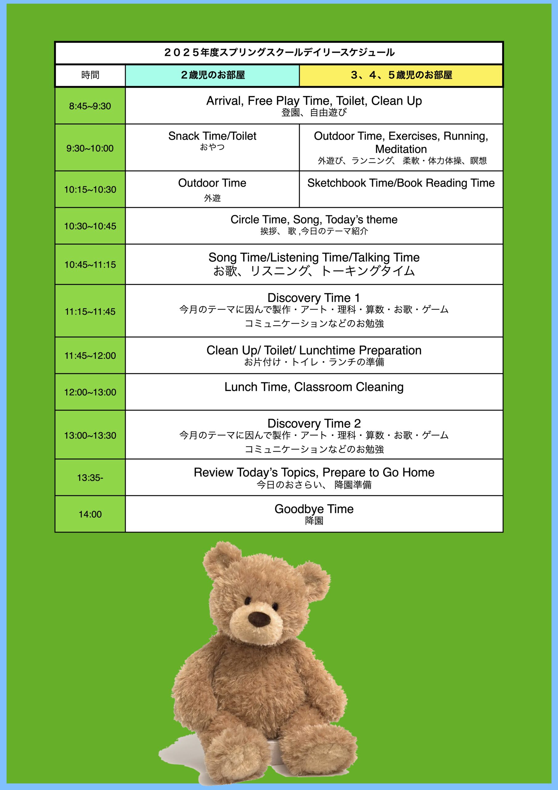 | 3, 4, 5歳児クラス | 1日 ¥6,300 |