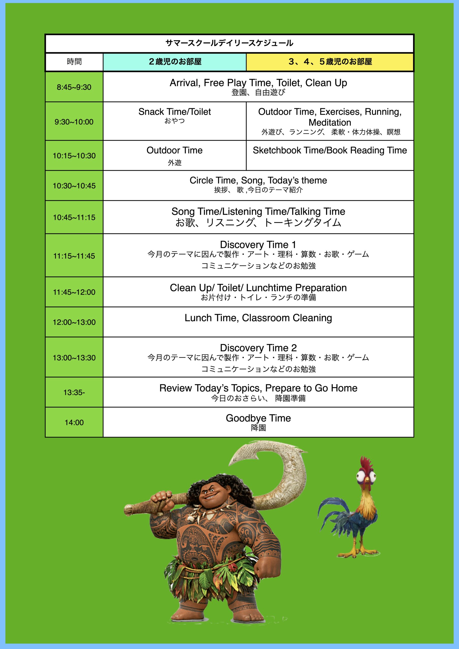 | 3, 4, 5歳児クラス | 1日 ¥7,000 |